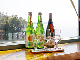 お酒造りを行っている学校蔵ならではの、麹や酒粕、酒米などを使ったランチ、デザート、ドリンクを提供しています。一面に広がる海を眺めながら、ゆったりとした時間をお過ごしください。
