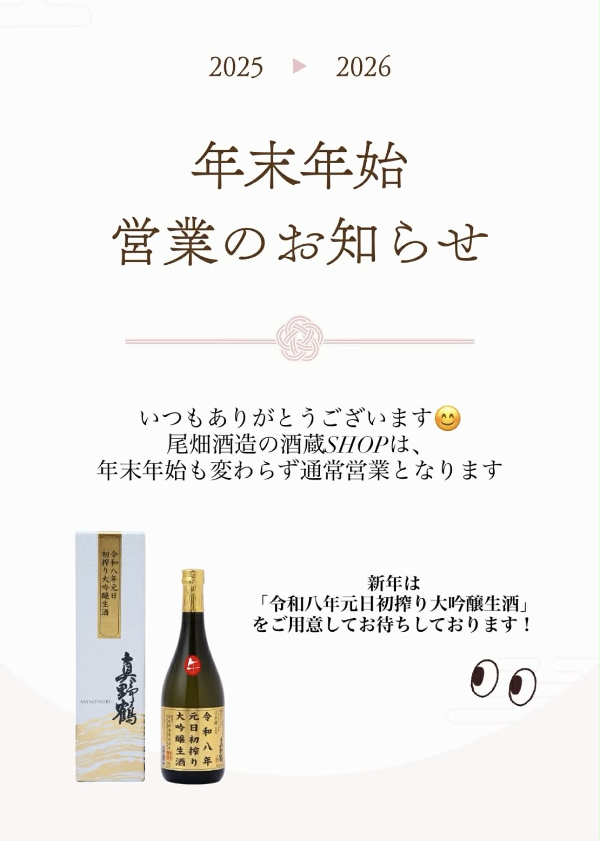 尾畑酒造 酒蔵SHOPは年末年始も通常営業しております